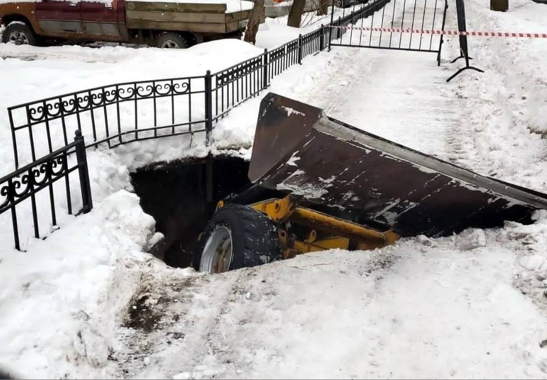 В подмосковном городе Балашихе снегоуборочный трактор полностью провалился под асфальт, кадры инцидента опубликовал Telegram-канал RT. Из-за аварии жители ближайших домов на время остались без воды и электричества.