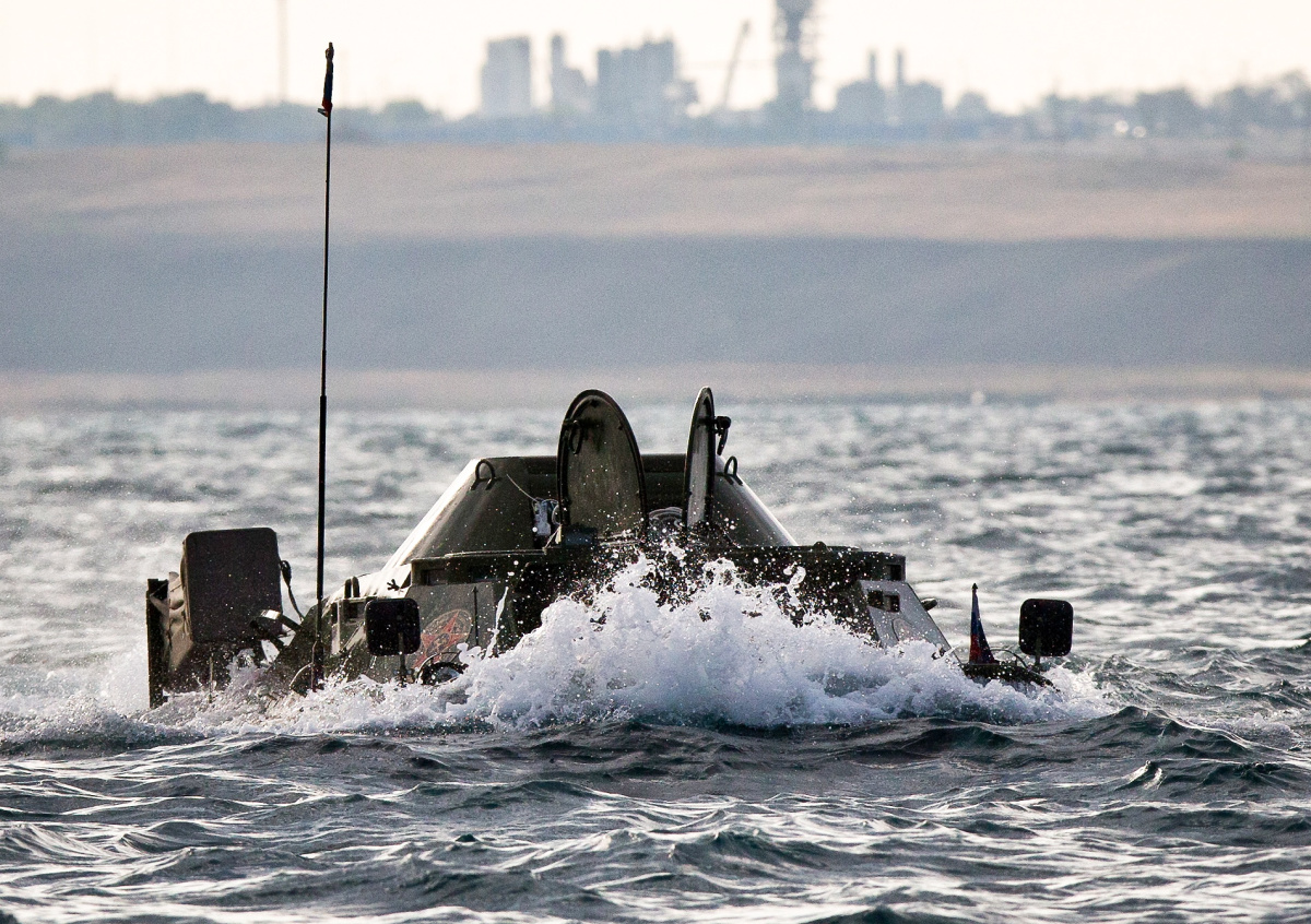 Бронемашина затонула во время преодоления Керченского пролива в рамках акции «Керченский десант "Дорога мужества"». На это повлияли сильный боковой ветер и течение. Однако экипажу удалось эвакуироваться. Никто не пострадал. Операция по подъёму состоится, как только это позволят погодные условия.