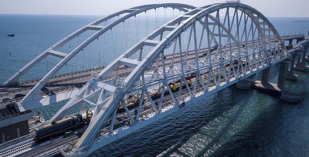 Житель Керчи снял на видео первый товарный поезд, выезжающий с Крымского моста.
