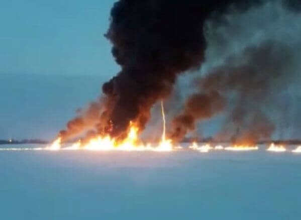 Смотрите, что творится на реке. Пламя прямо фонтаном бьёт, — говорит очевидец, снимавший видео.