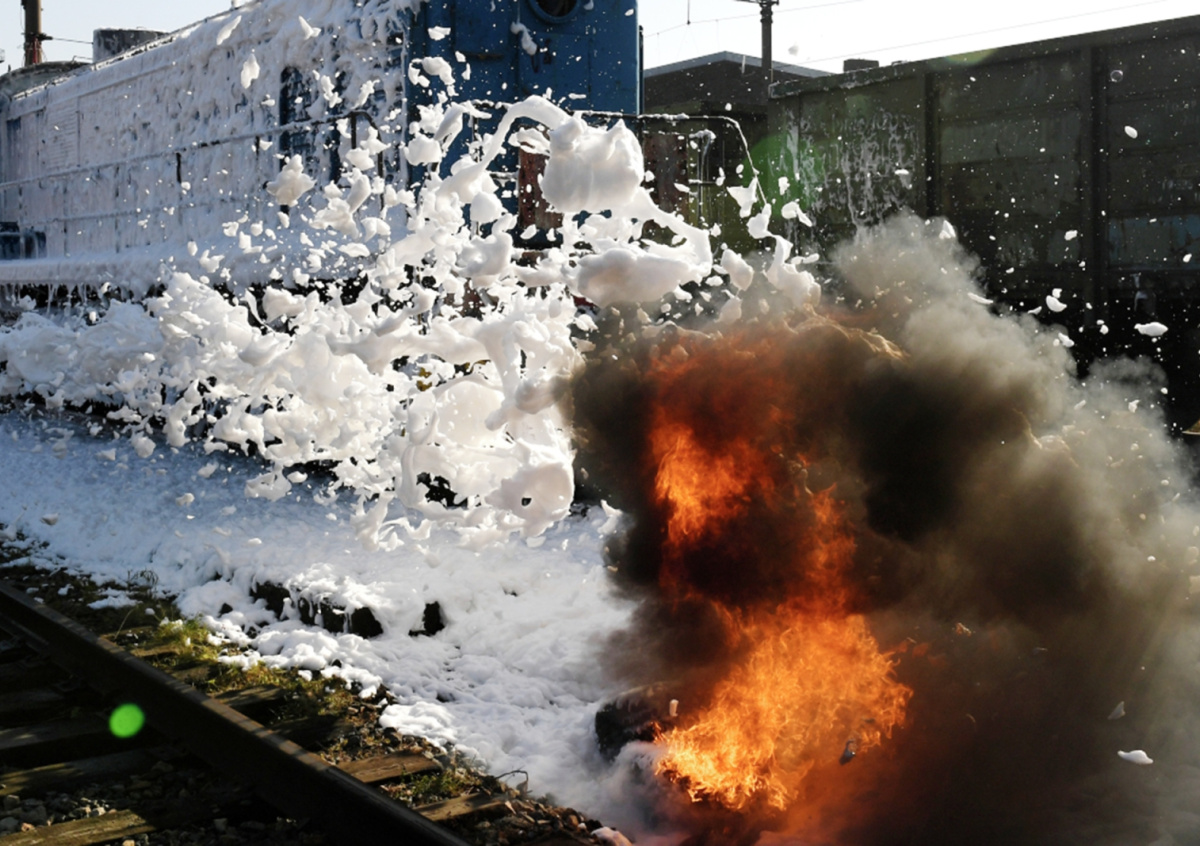 Пожарный поезд буксируется маневровым, — сообщил корреспондент издания.