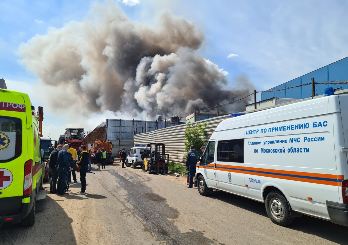 Кадры крупного пожара на подмосковном складе покрышек ранее появились в Сети. Очевидцы запечатлели высокий столб черного дыма, который был заметен издалека из разных точек.