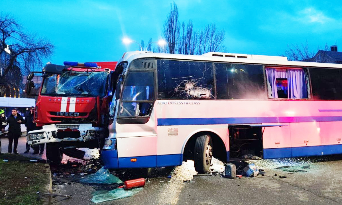 По данным канала, в автобусе ехали 50 человек, среди которых 43 — дети. Предположительно, машина спасателей направлялась на место пожара на улице Восстания.