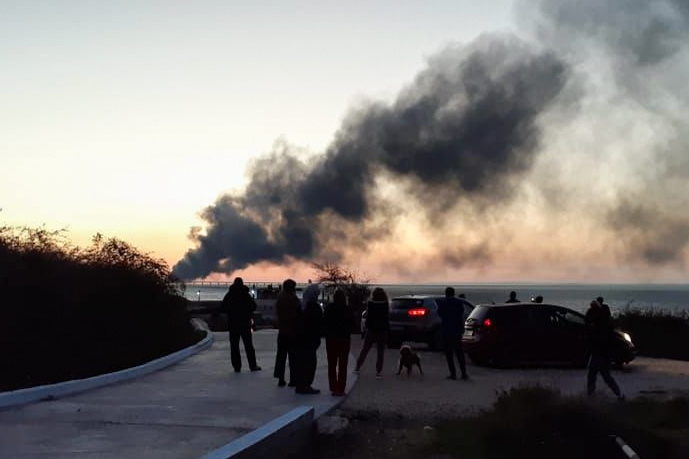 Возгорание на одном из участков Крымского моста произошло 8 октября около 06:05. По предварительным данным, грузовой поезд шел из Тамани в Керчь, когда одна из цистерн загорелась. Позднее стало известно, что на мосту произошел подрыв грузовика, приведший к возгоранию семи топливных цистерн железнодорожного состава.