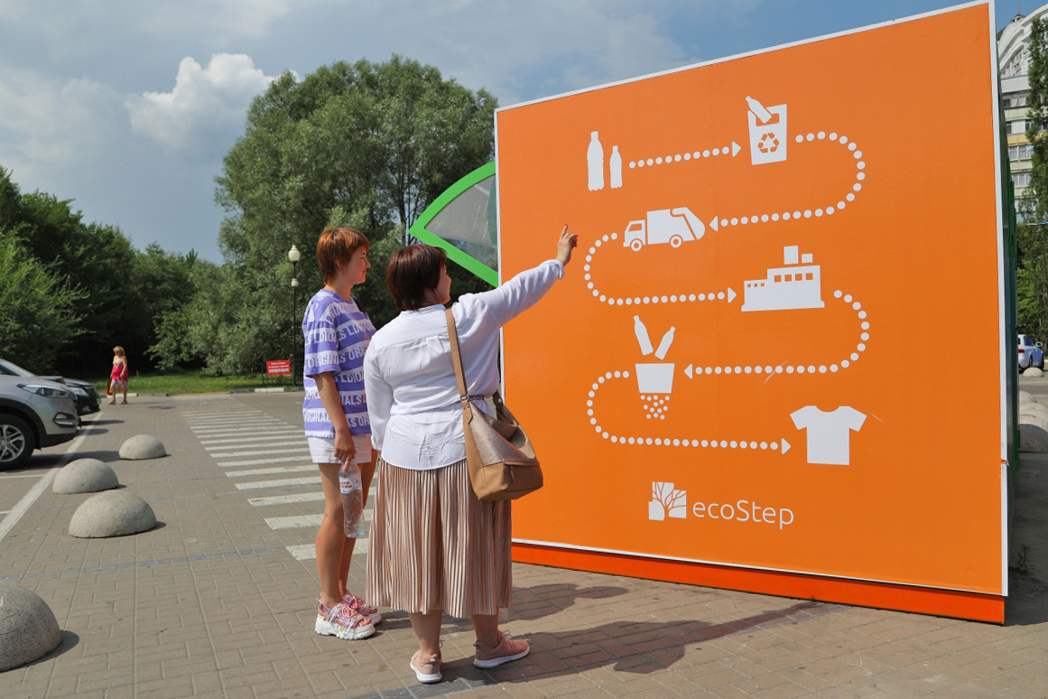 Люди рассматривают схему переработки вторсырья на торце пандомата Люди рассматривают схему переработки вторсырья на торце пандомата Фото: Антон Вергун/РИА Новости