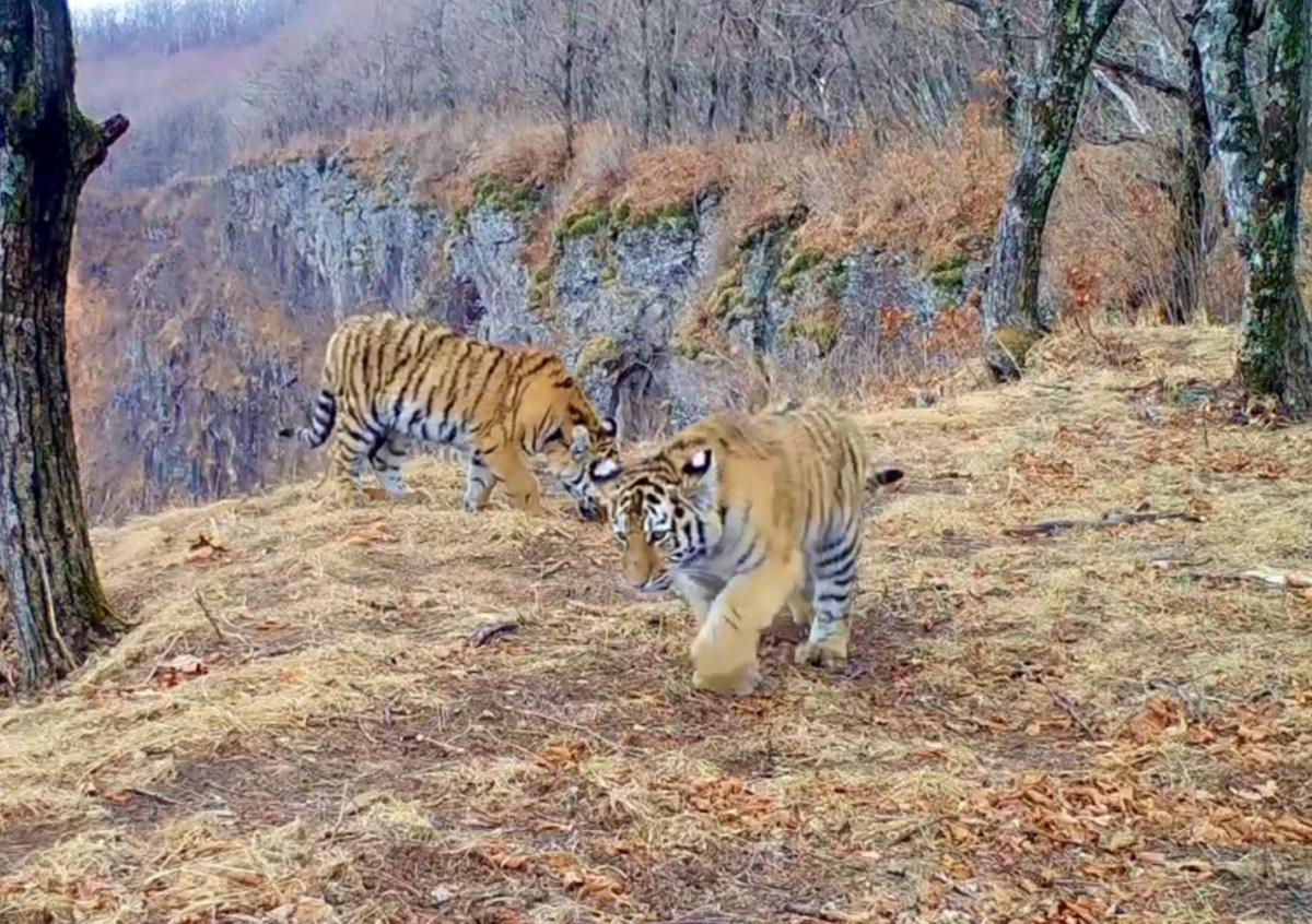 Два амурских тигренка попали в объектив фотоловушки в Приморье. Ролик с охраняемыми животными опубликовала в социальных сетях пресс-служба национального парка «Земля леопарда».