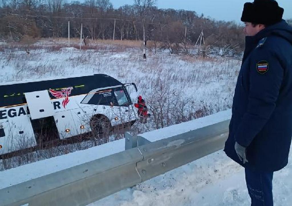 ДТП с автобусом, перевозившим вахтовиков, произошло утром 16 декабря. По предварительным данным, водитель на повороте не справился с управлением на скользкой дороге, в результате чего автобус слетел с трассы в кювет и перевернулся.