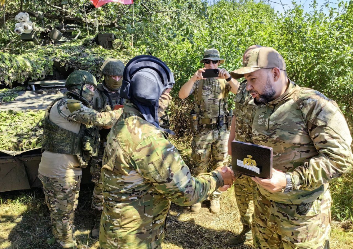 Пушилин наградил экипаж танка «Алеша»