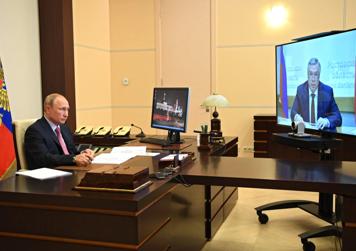 Президент РФ Владимир Путин прервал сеанс видеосвязи с губернатором Ростовской области Василием Голубевым из-за международного телефонного разговора.