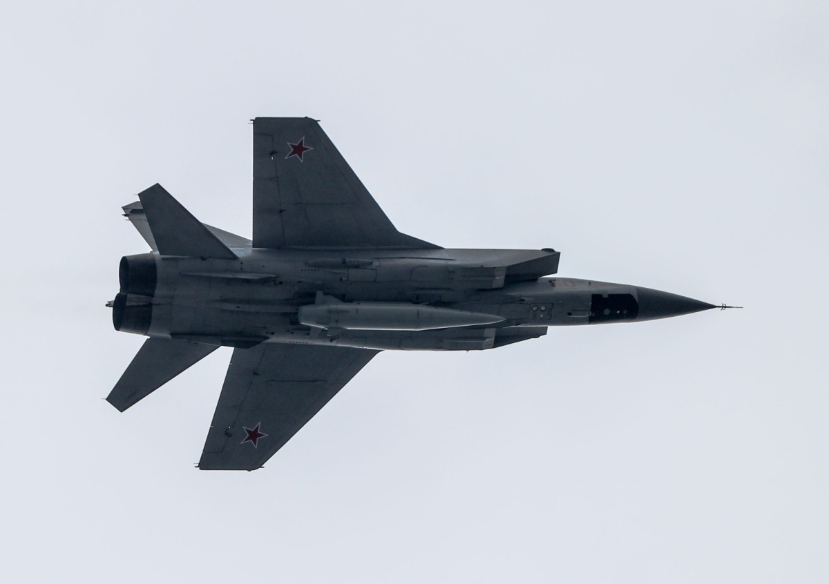 Истребитель-перехватчик МиГ-31К с гиперзвуковыми ракетами «Кинжал» Истребитель-перехватчик МиГ-31К с гиперзвуковыми ракетами «Кинжал» Фото: Сергей Булкин/NEWS.ru