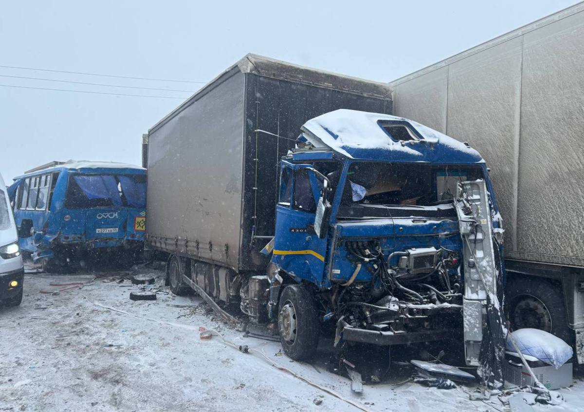 Предварительно установлено, что водитель Volvo, двигаясь в направлении Омска, в районе 548-го км выехал на полосу встречного движения, где столкнулся с автобусом ПАЗ (маршрут Омск — Крутинка). В дальнейшем произошло столкновение автомобилей Toyota, двух КамАЗов и Volvo, — сказано в сообщении.