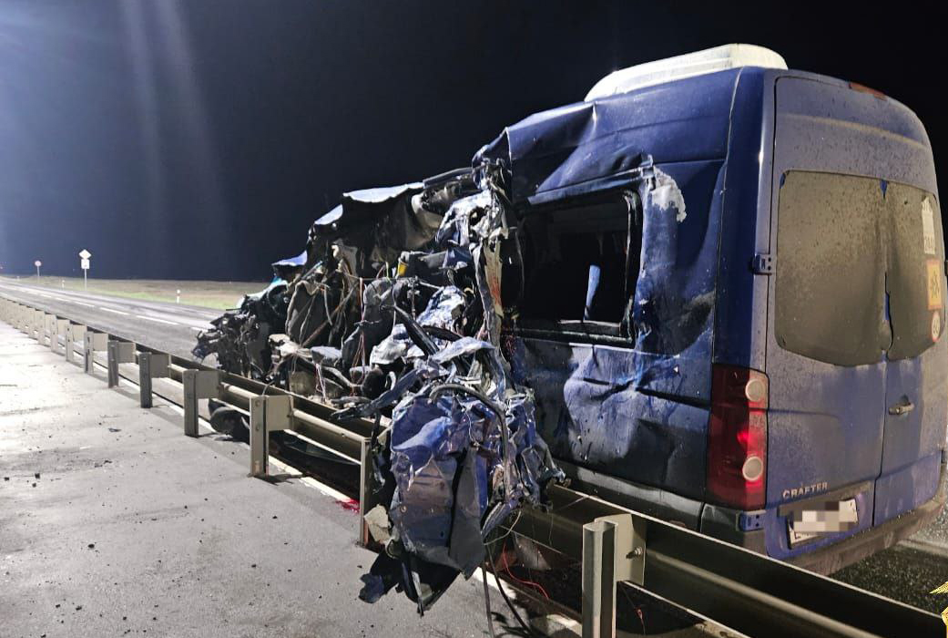 Лобовое столкновение пассажирского микроавтобуса и грузового автомобиля произошло ночью 19 мая на федеральной трассе Р-22 в Юстинском районе, недалеко от поселка Цаган Аман. Следователи проверяют сразу несколько версий: превышение скорости, техническая неисправность транспорта или человеческий фактор.