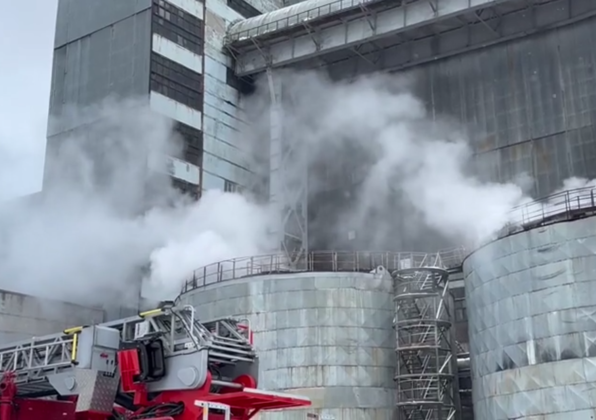 На кадрах видно, как над зданием комплекса поднимается дым. На месте происшествия запечатлены восемь расчетов МЧС. Поверх видео слышны переговоры спасателей.