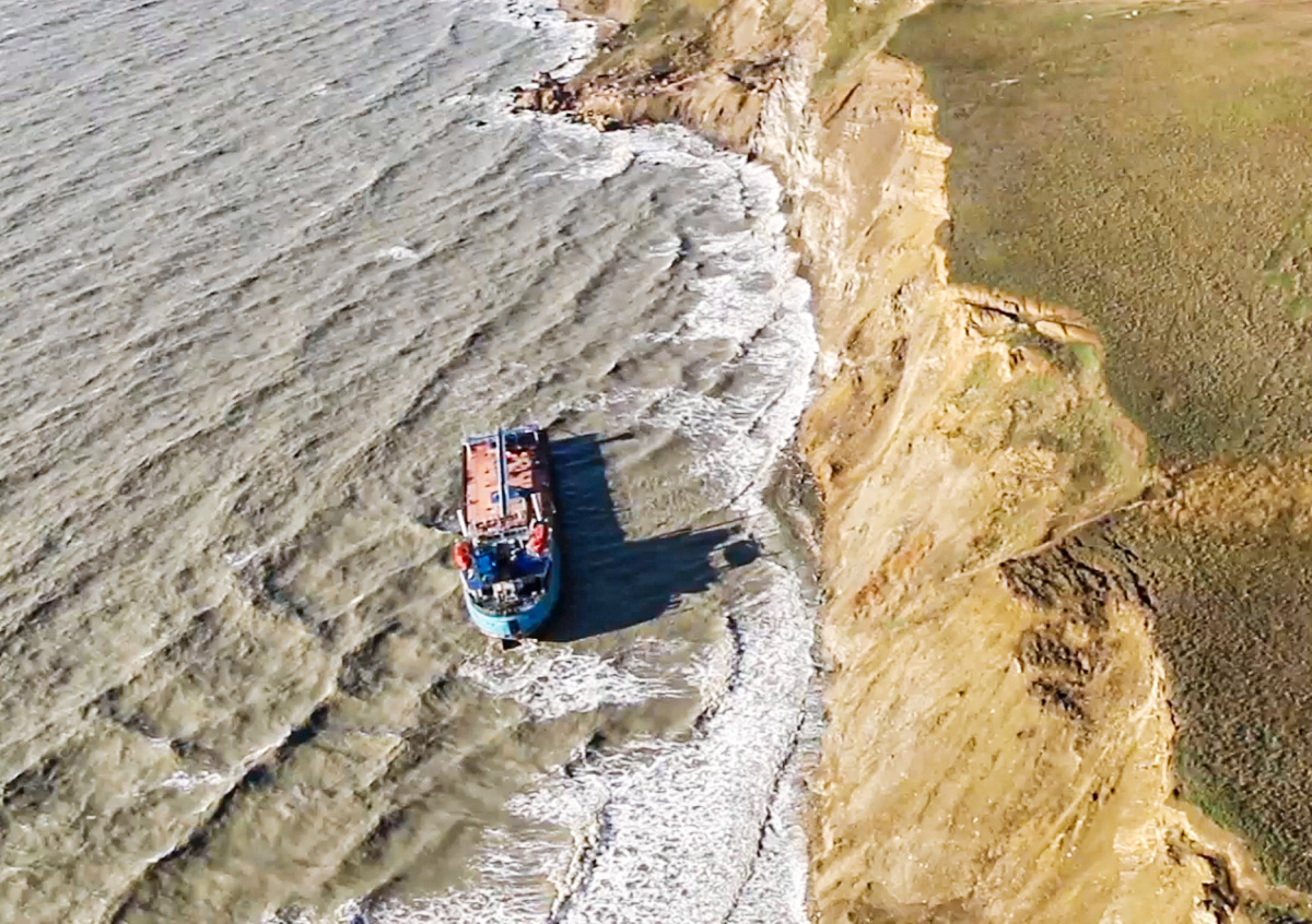 Танкер «Волгонефть-109» подал сигнал бедствия около порта Кавказ, который находится на длинной косе в Керченском проливе. Капитан попросил сменить якорную стоянку, сейчас танкер находится в районе Кучугуры юго-восточнее мыса Пекло, то есть у южного побережья Азовского моря.