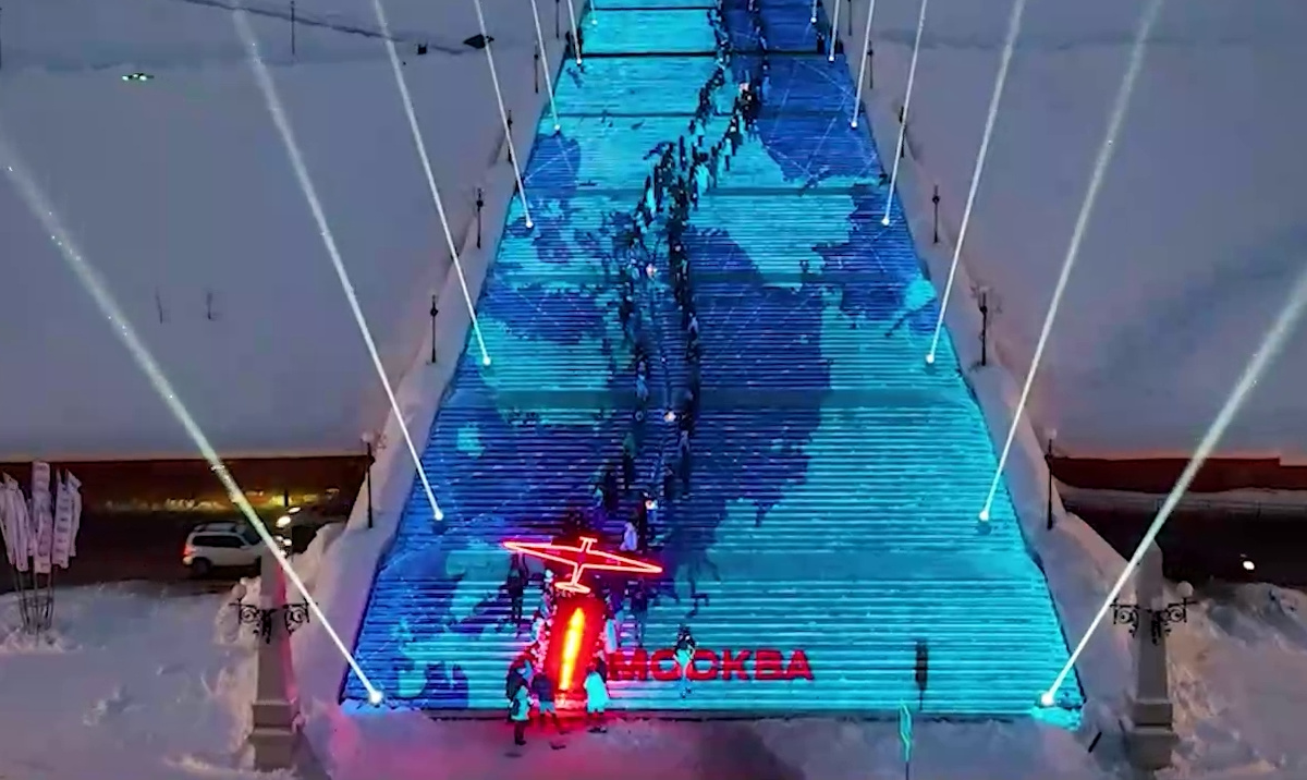 Участники воссоздали перелет из Москвы в Ванкувер через Северный полюс, который совершил Чкалов с экипажем. Нижегородцы на руках пронесли фигуру самолета вверх по Чкаловской лестнице, отмечая при этом передвижение борта красной лентой.