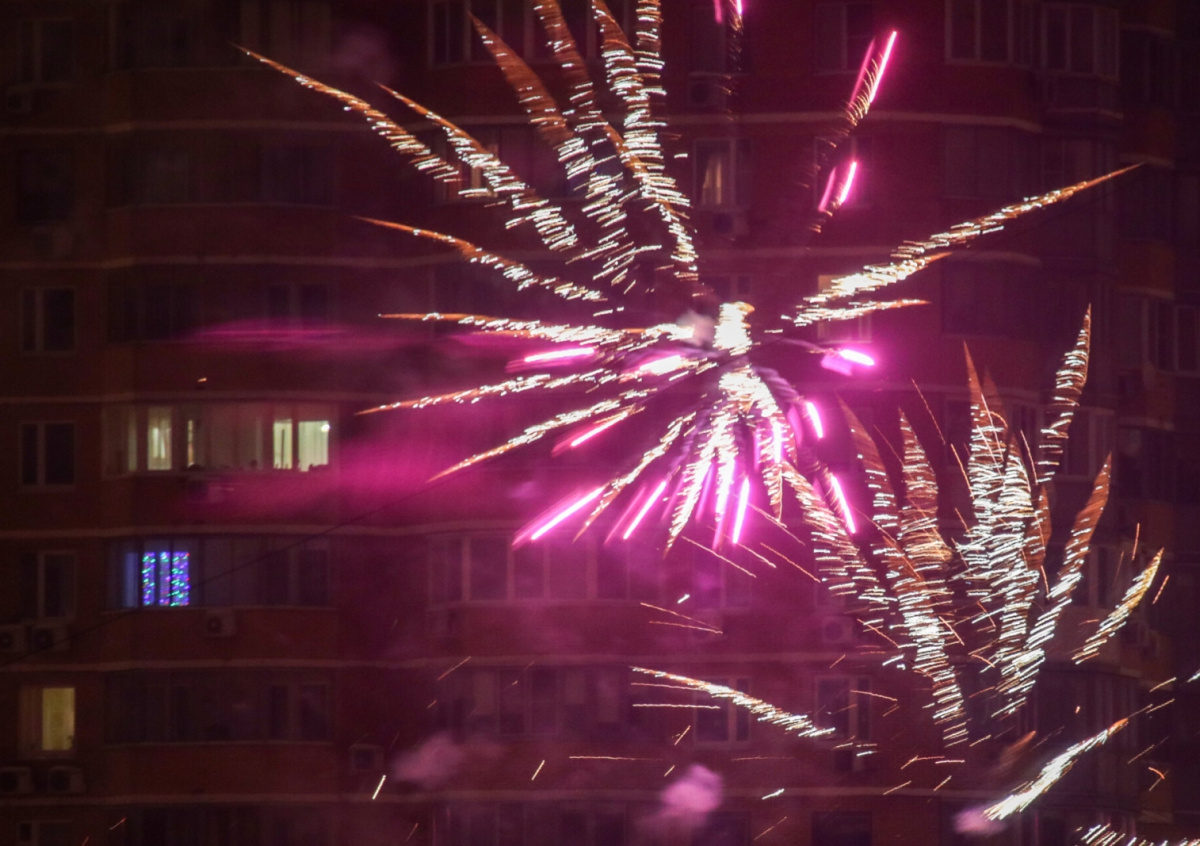 Оглушительная стрельба фейерверками длилась около минуты. По словам очевидца, салют залетал даже в окна.