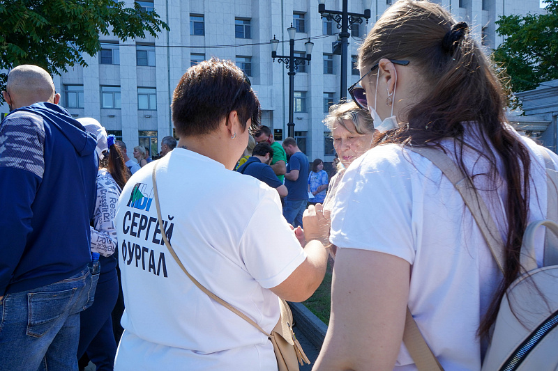 Митинг в поддержку арестованного по подозрению в причастности к убийствам дальневосточных предпринимателей экс-губернатора Хабаровского края Сергея Фургала проходит в седьмой раз.