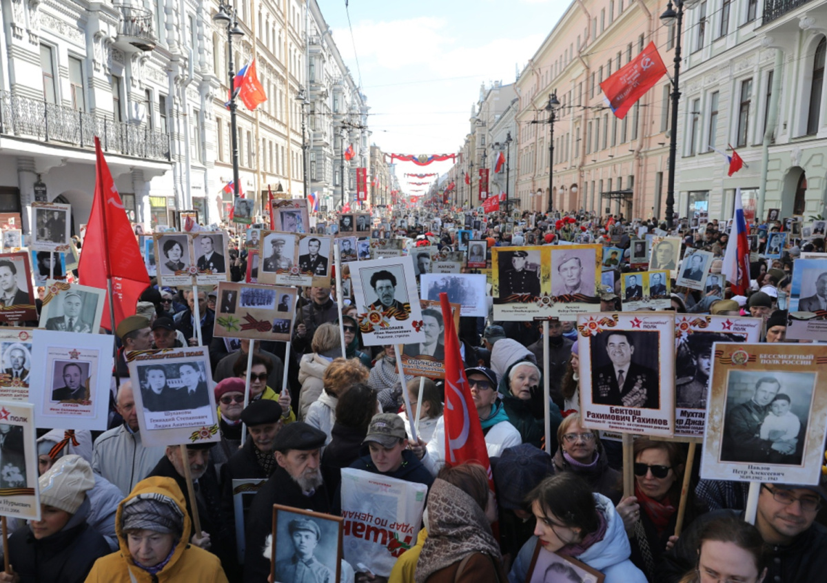 В акции «Бессмертный полк», которая прошла 9 мая в центре Санкт-Петербурга, участвовало свыше миллиона человек, сообщила пресс-служба городской администрации. Шествие было приурочено к 80-летию Победы и впервые за несколько лет снова прошло в очном формате.