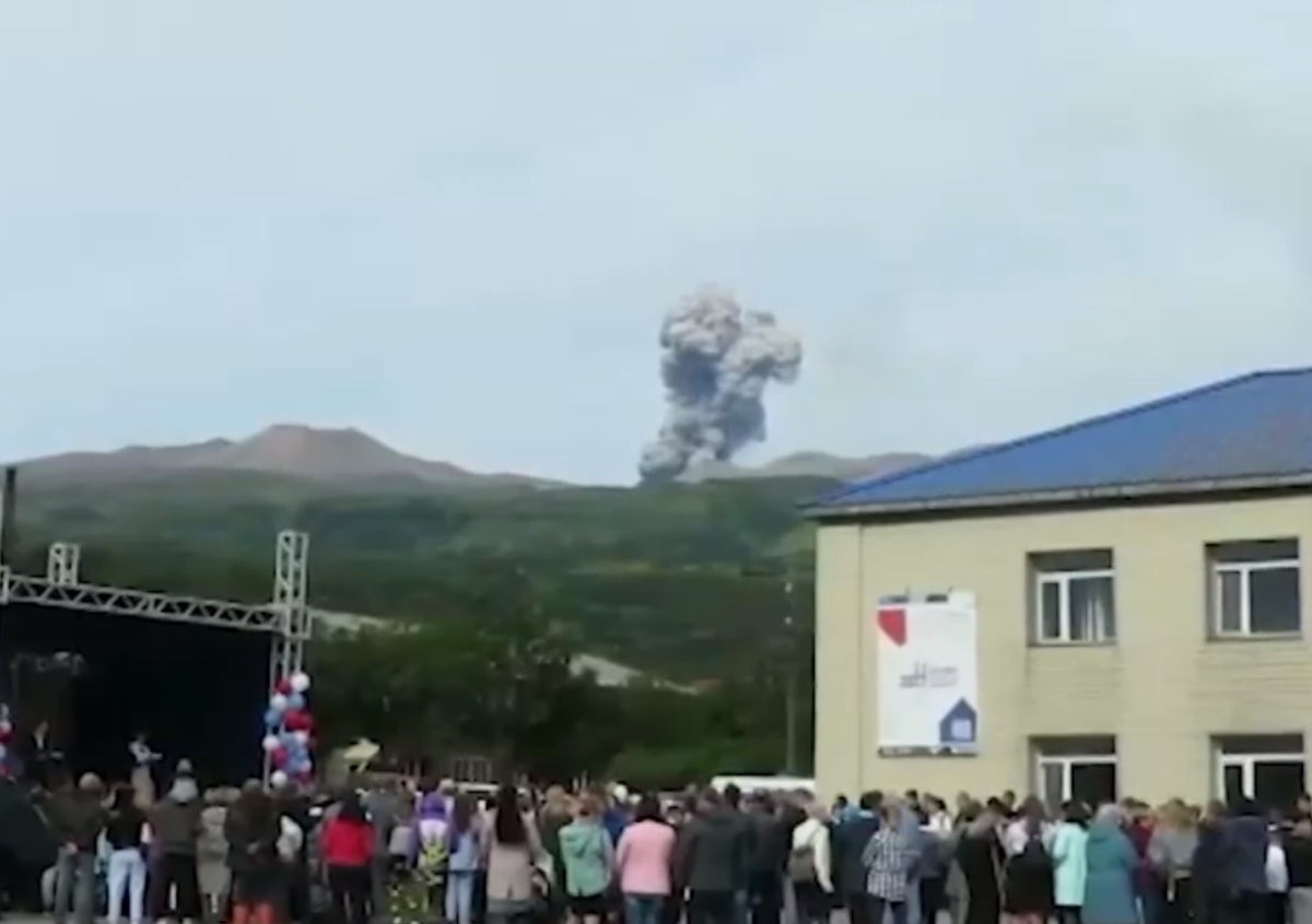 Школьная линейка на Курилах прошла на фоне извержения вулкана