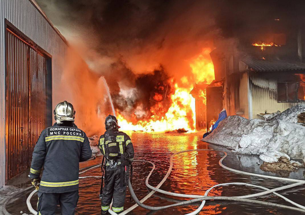 Сильный пожар вспыхнул на складе в Подмосковье