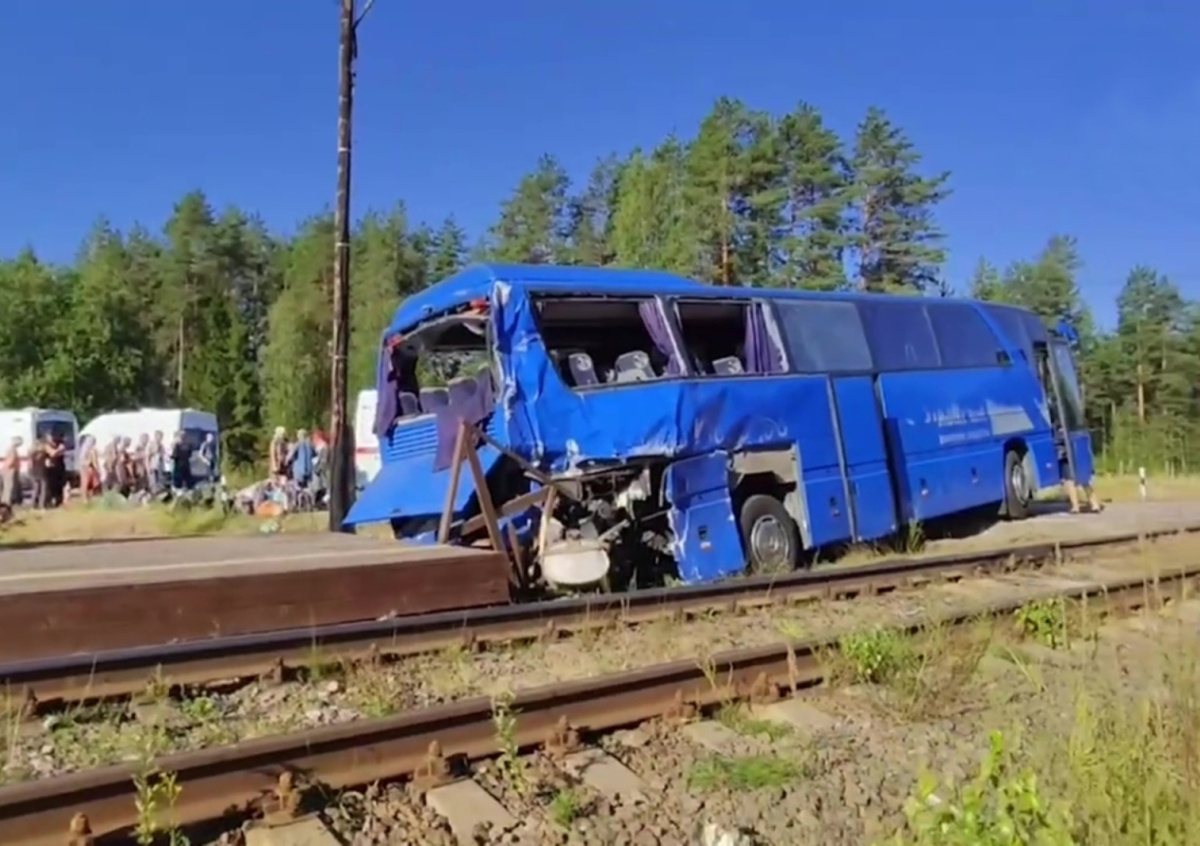 Предварительной причиной столкновения поезда с автобусом в Ленинградской области является выезд последнего на железнодорожные пути на запрещающий сигнал, сообщили в Telegram-канале пресс-службы западного межрегионального следственного управления на транспорте. Инцидент произошел 4 августа на перегоне Олонец — Лодейное Поле вблизи станции Инема.