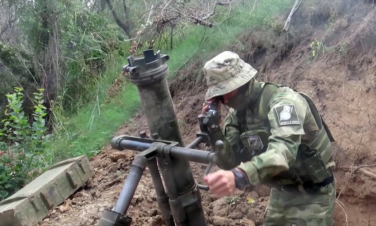 Ролик был снят с квадрокоптера. На кадрах видно, как украинский боец пытается скрыться в окопе у полуразрушенного здания. После этого российские солдаты заряжают миномет и прикрывают уши. Снаряд прилетают в точку, где располагался боец — мужчину подбросило над землей на несколько десятков метров.