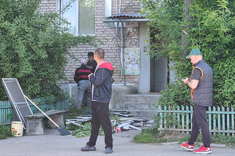 По данным агентства, больше всего пострадал шестиподъездный пятиэтажный дом. В нем выбило окна в первом, втором и третьем подъездах, сорвало обшивки балконов. Также были посечены припаркованные автомобили. Коммунальщики начали уборку двора, выносят мусор из поврежденных квартир. Разбитые окна закрывают поликарбонатом.