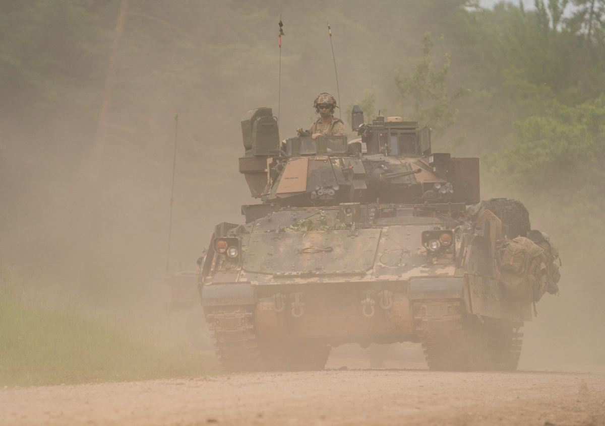На опубликованных кадрах можно увидеть немецкие танки Leopard, американские БМП M2 Bradley и бронетранспортеры М113.
