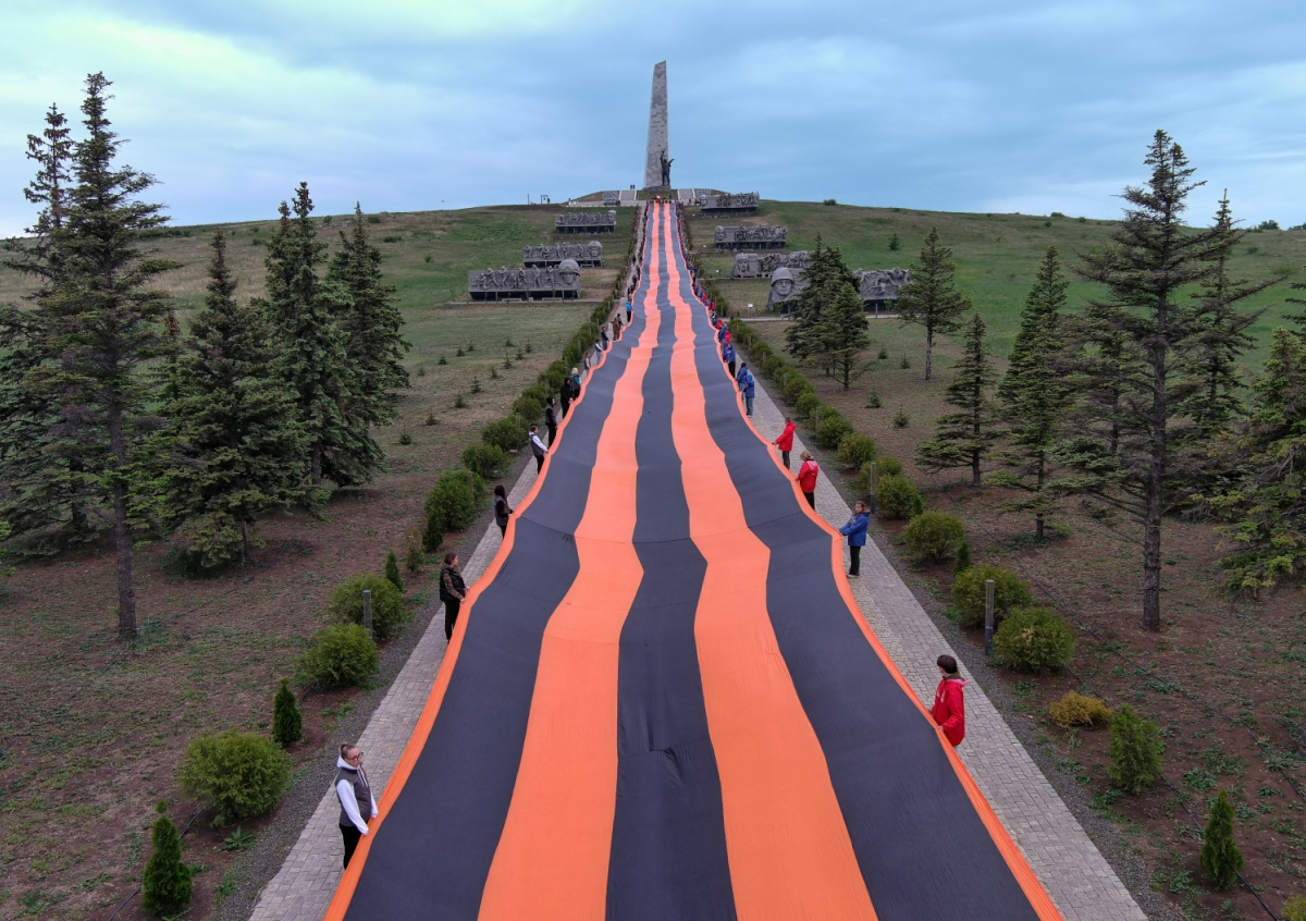 На мемориале «Саур-Могила» в ДНР развернули георгиевскую ленту длиной 300 метров