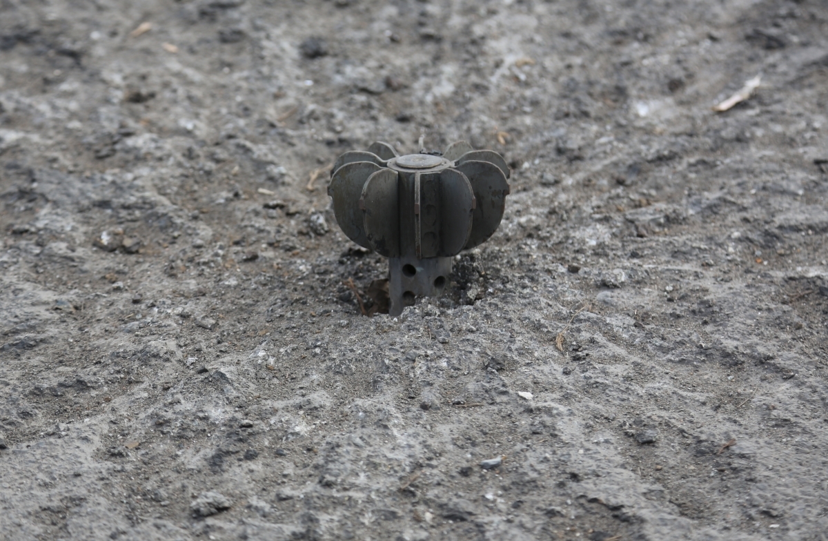 Фрагмент снаряда, застрявший в асфальте после обстрела Фрагмент снаряда, застрявший в асфальте после обстрела Фото: Сергей Аверин/РИА Новости