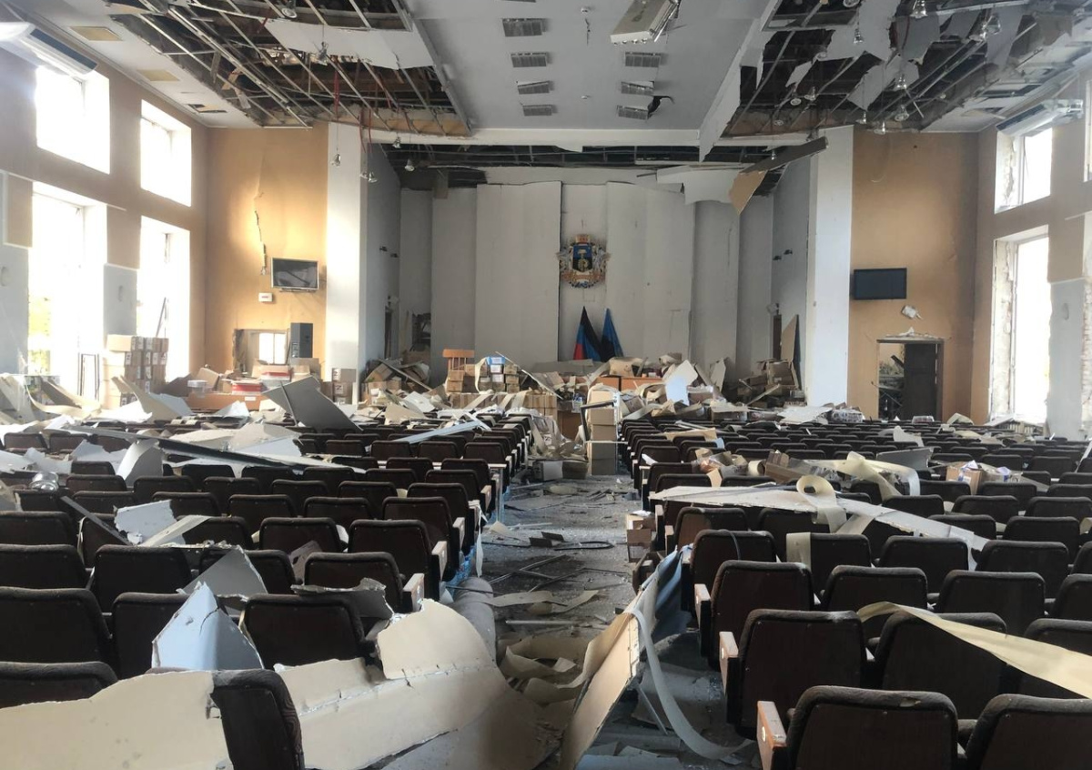 По поступившей информации сегодня в 07:37 зафиксировано прямое попадание вражеского боеприпаса в здание городской администрации Донецка со стороны Парка кованых фигур. Сгорело 3 автомобиля, стоявших возле здания. В здании городской администрации выбито остекление окон, — написал он.