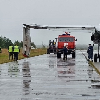 Ан-24 с поврежденным крылом совершил аварийную посадку в аэропорту города Усть-Кут в Иркутской области, сообщает ТАСС со ссылкой на пресс-службу Восточного межрегионального следственного управления на транспорте СК России. Самолет, летевший из Иркутска, выкатился за пределы взлетно-посадочной полосы, у него подломилась передняя стойка шасси и повредилось крыло.