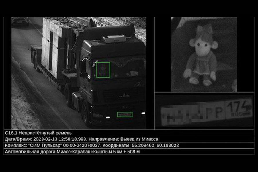 Как ранее сообщалось, инцидент с дальнобойщиком произошел в городе Миассе. В кабине автомобиля под лобовым стеклом была плюшевая обезьянка. Система контроля за водителями без ремней приняла игрушку за пассажира, который едет без соблюдения необходимых мер безопасности, и выписала штраф.
