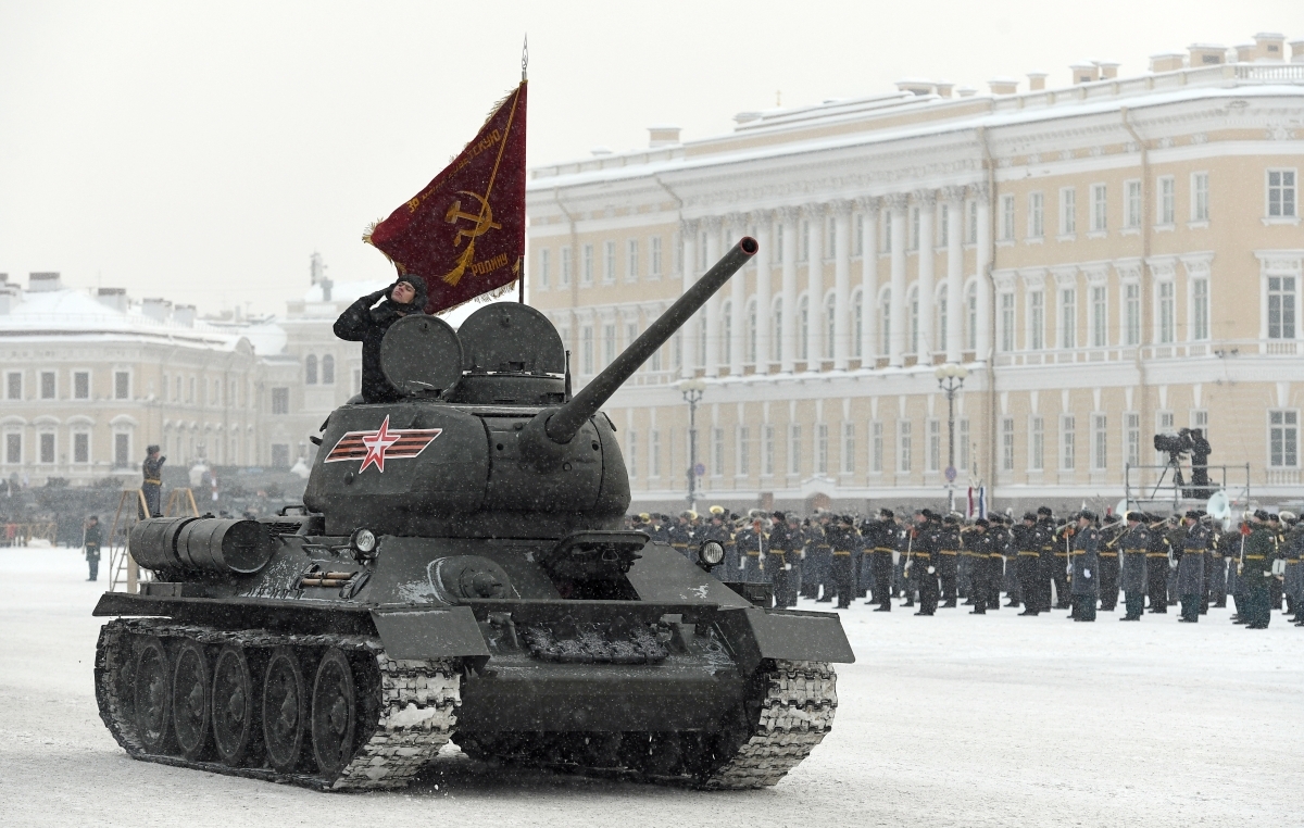 Танк Т-34-85 на параде в честь 75-летия снятия блокады Ленинграда на Дворцовой площади в Санкт-Петербурге Танк Т-34-85 на параде в честь 75-летия снятия блокады Ленинграда на Дворцовой площади в Санкт-Петербурге Фото: Алексей Даничев/РИА Новости