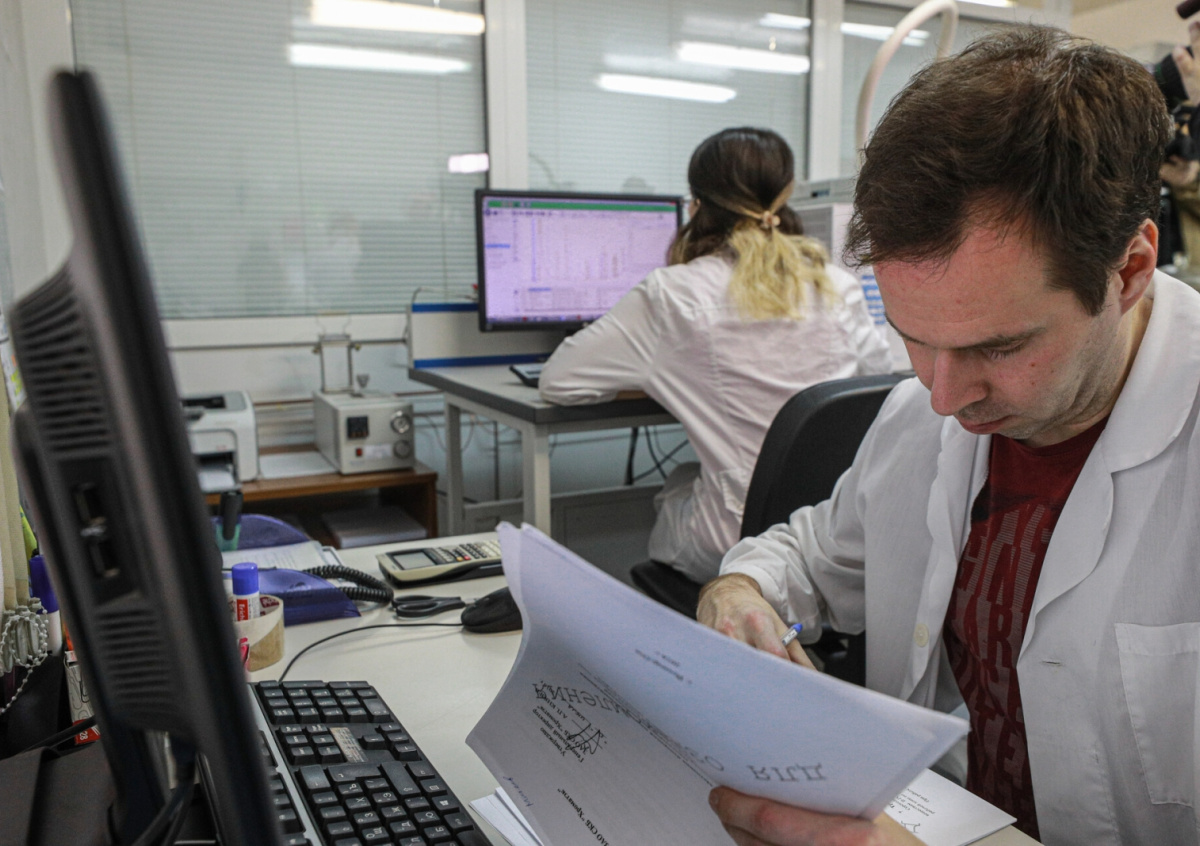 Сотрудник за работой в лаборатории по анализу воздуха аналитической лаборатории ГПБУ «Мосэкомониторинг» Сотрудник за работой в лаборатории по анализу воздуха аналитической лаборатории ГПБУ «Мосэкомониторинг» Фото: Сергей Булкин/NEWS.ru