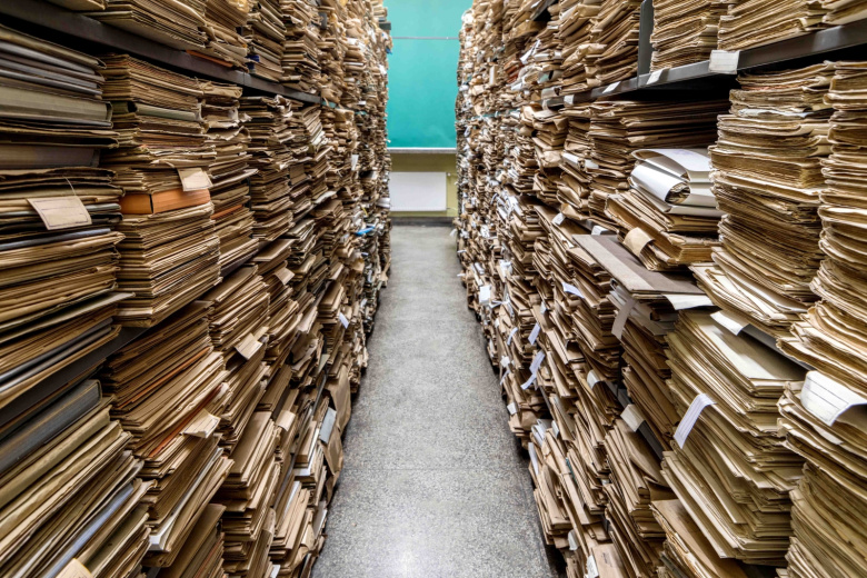 На кадрах, опубликованных каналом, видно, что намокшие дела сложены в стопки на полу на первом этаже здания и окружены лавочками.