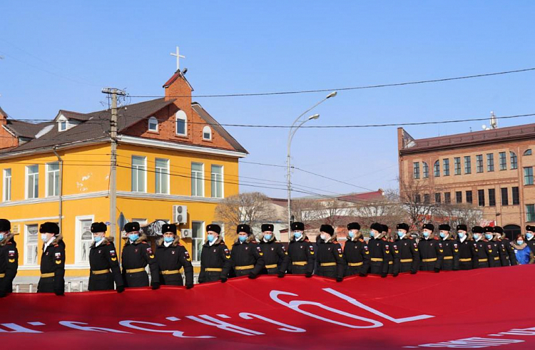 Как сообщается на сайте регионального правительства, приморцы положили начало общероссийской патриотической акции, посвящённой «сохранению памяти о подвиге советского народа в годы Великой Отечественной войны, поддержке и защите ветеранов». В акции приняли участие более 200 жителей города.