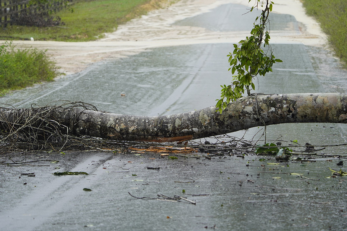 Огромное дерево нагибается под порывами ветра и в какой-то момент падает прямо на едущий по дороге автобус, который чудом успевает проехать под накрывающими его ветками. Водителю, который снимал происходящее на камеру из своей машины, также удается увернуться от рухнувшего гиганта.