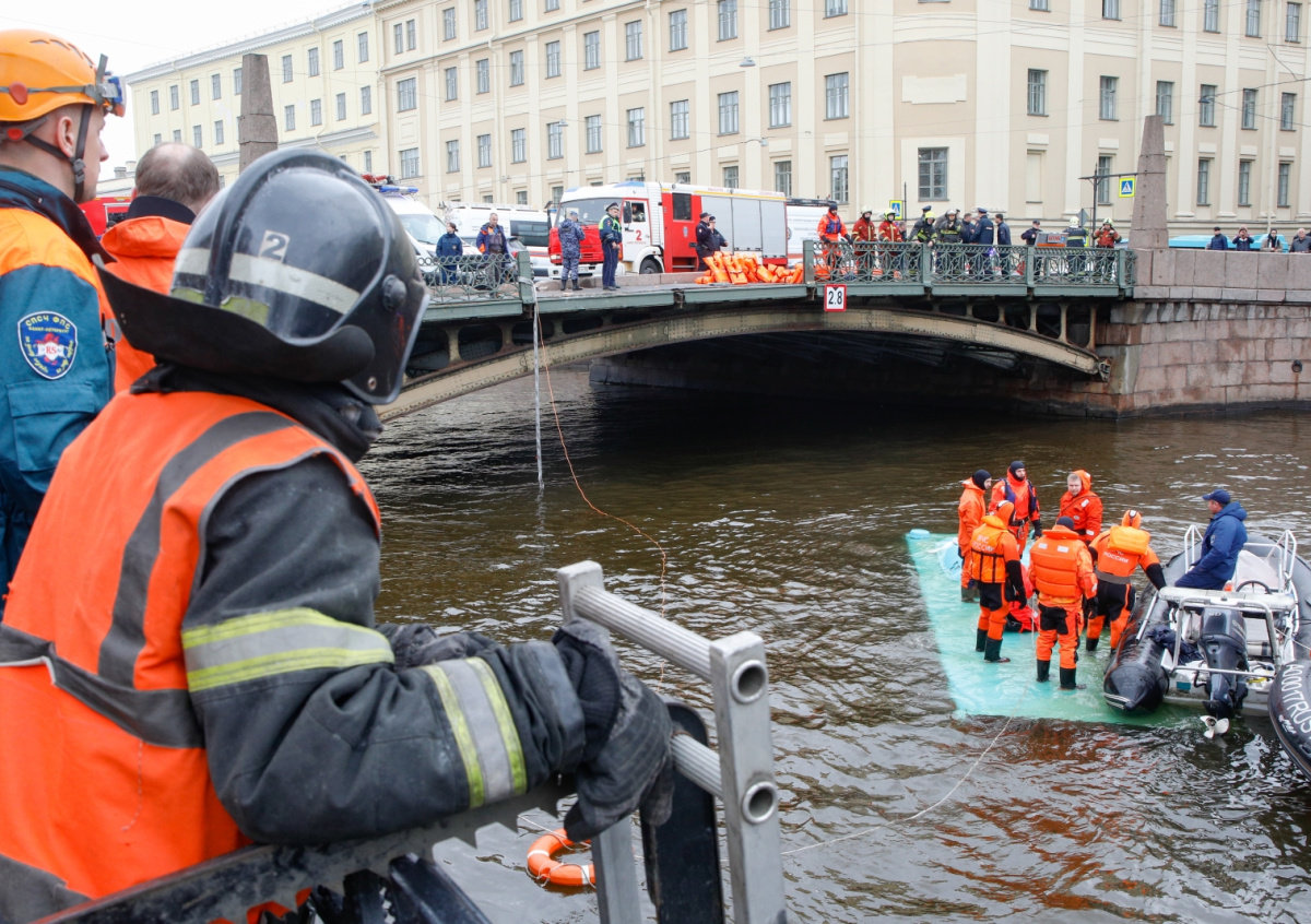 Ранее стало известно, что лишь один пассажир упавшего в Мойку автобуса выжил после аварии. Медики оценили состояние 56-летнего мужчины как тяжелое. Пострадавший находится в реанимации. Мужчина ехал в автобусе вместе с женой, которую, по его словам, он держал за руку.