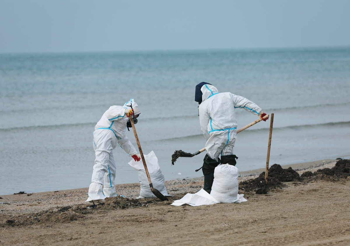 Он добавил, что волонтеры занимаются уборкой «тяжелого» мазута, который приносит на берег с морского дна. При этом дополнительные рабочие руки не помешали бы, потому что загрязнение рассредоточено по большой территории. К тому же уборка вручную также необходима.
