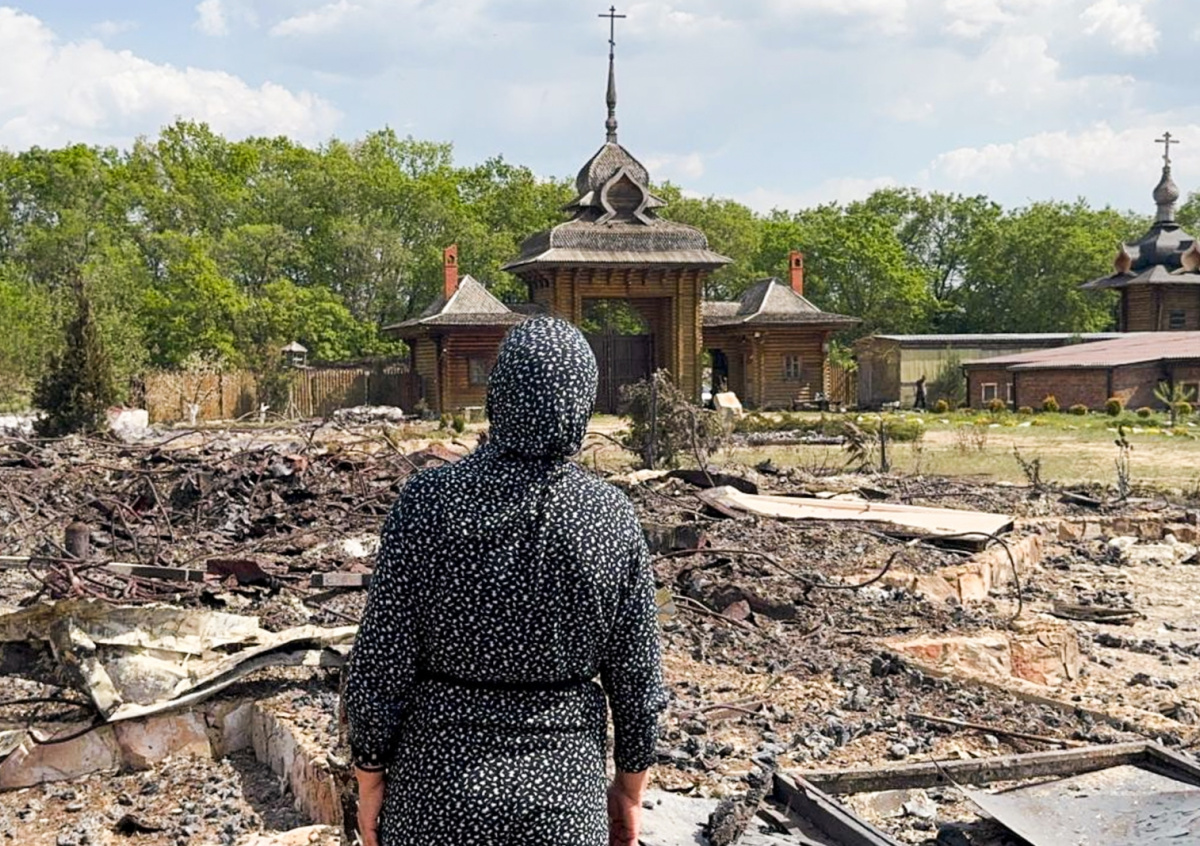 Женщина около сгоревшего после атаки БПЛА со стороны ВСУ храмового комплекса Новый Иерусалим в Валуйском районе Женщина около сгоревшего после атаки БПЛА со стороны ВСУ храмового комплекса Новый Иерусалим в Валуйском районе Фото: Евгений Мартынов/ТАСС