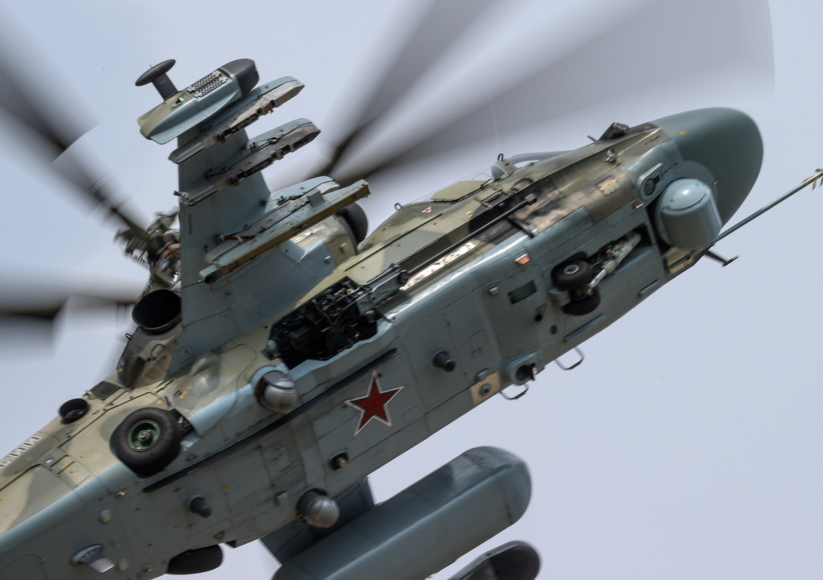 Российские военные после выполнения боевой задачи совершили противоракетный маневр. Использовав тепловые ловушки, Ка-52М успешно вернулись на площадку вылета, констатировали в пресс-службе.