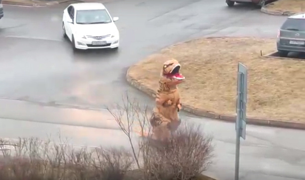 Житель Всеволожска Ленинградской области вынес мусор, нарядившись в костюм динозавра, пошёл выносить мусор — и стал героем Интернета. Соседи сняли его на видео и выложили в соцсети.