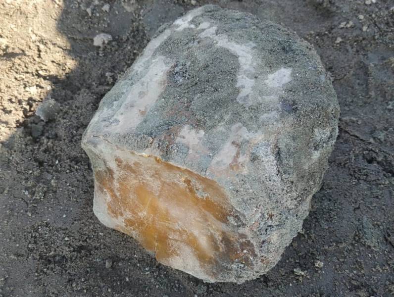 Самородок массой 1313 граммов 21 февраля нашёл машинист бульдозера возле шагающего экскаватора, при помощи которого добывается янтарь.