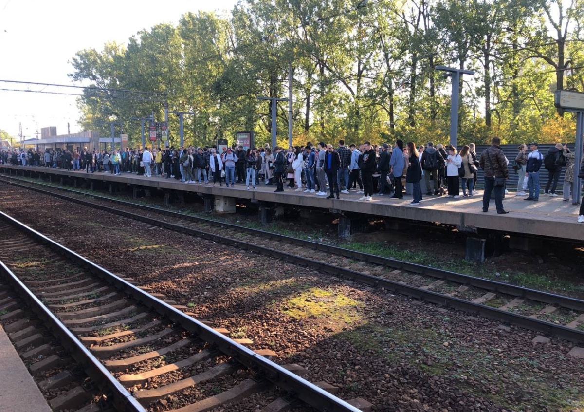 Отмечается, что жители Одинцово продолжают прибывать на станцию МЦД. Пассажиры признаются, что они никогда не видели такого скопления людей на платформе. По их словам, по громкой связи объявили, что опоздание электрички может составить 20–30 минут.