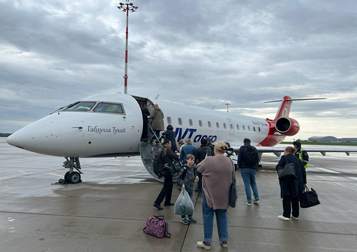Начинается посадка. Пассажиров ведут в автобус и везут к маленькому самолету, с виду частному джету. Это канадский узкофюзеляжный лайнер, рассчитанный на 50 человек.