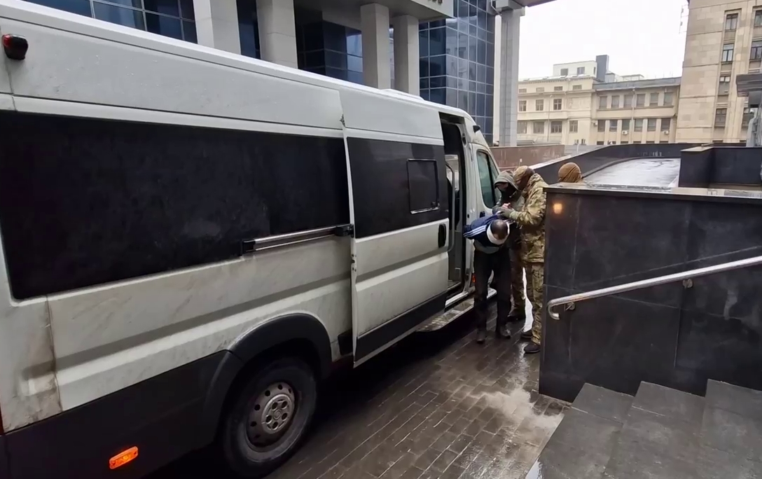 СК опубликовал видеокадры с задержанными. Их привезли на допрос в СК РФ. Исходя из представленных кадров, они были доставлены в Москву с закрытыми глазами. На лицах предполагаемых террористов были надеты повязки.