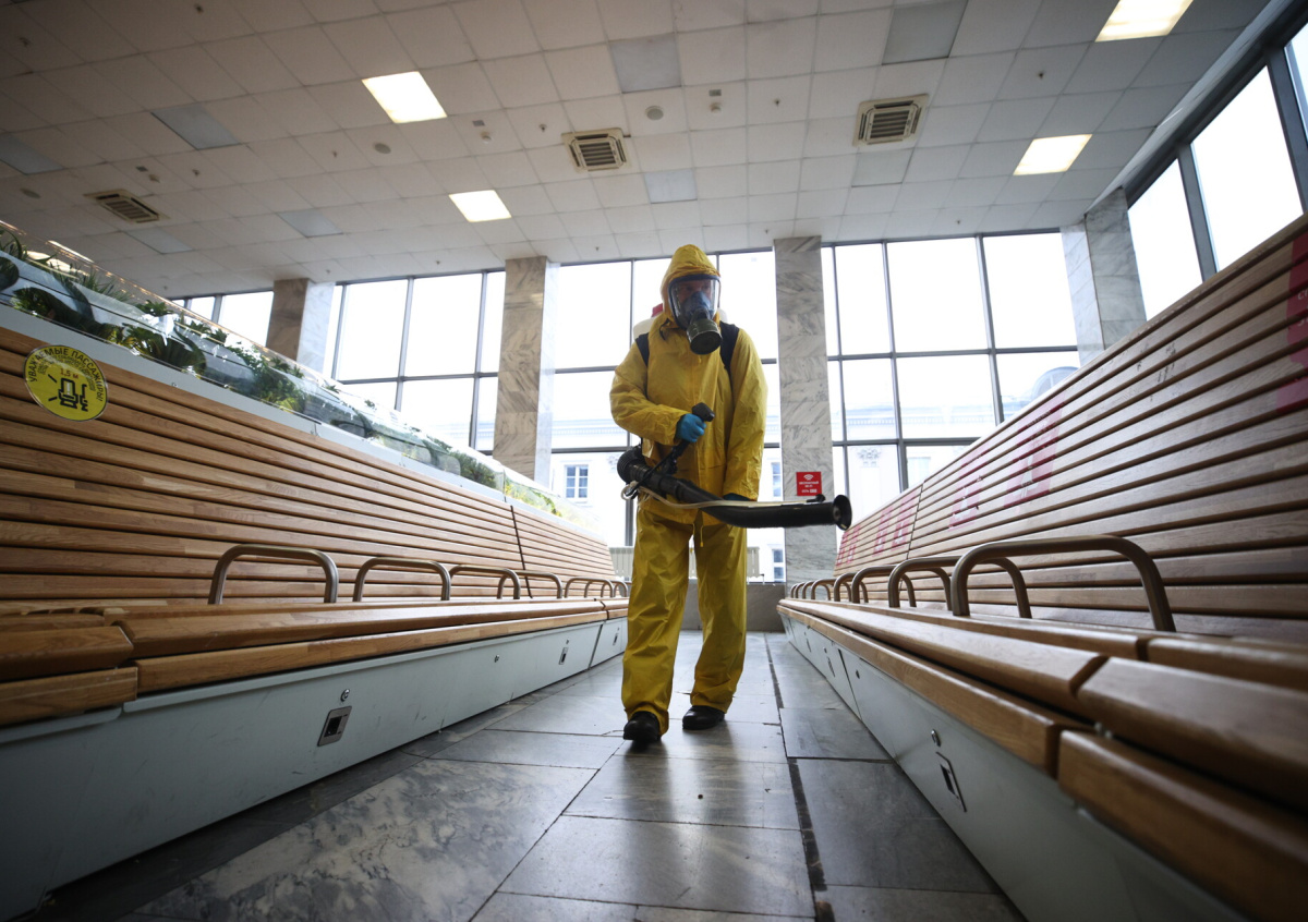Специалисты центра по проведению спасательных операций особого риска «Лидер» провели дезинфекцию Ленинградского вокзального комплекса в Москве. Как это было — в фотогалерее NEWS.ru