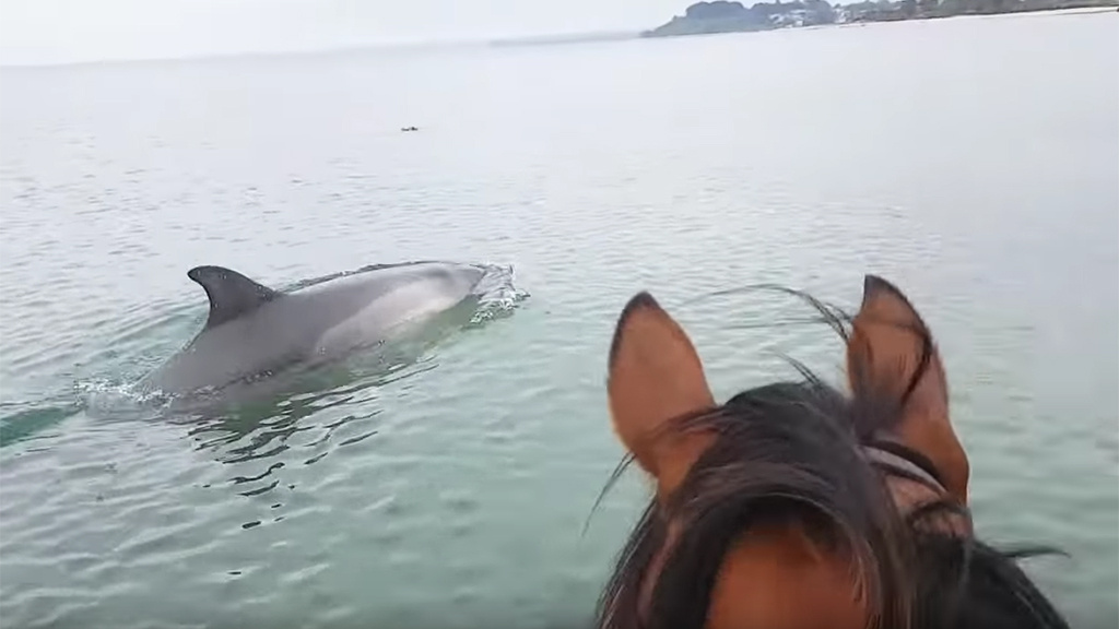В Австралии дружбу скакуна и морских обитателей запечатлели на видео