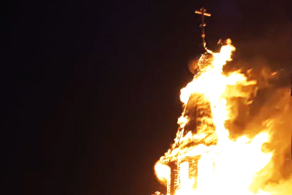 «Там сгорел не один храм — храмовый комплекс практически полностью разрушен огнем. Там осталась одна только небольшая часовня Божией Матери, остальное уничтожено», — рассказал Дыбов.